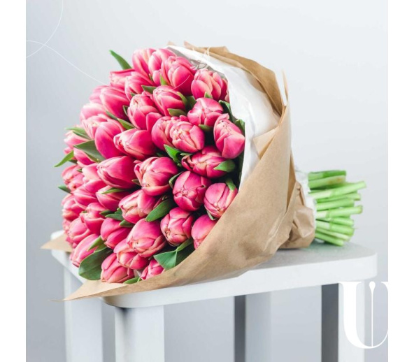 Весенний авторский букет из пионовидных розовых тюльпанов-35 штук