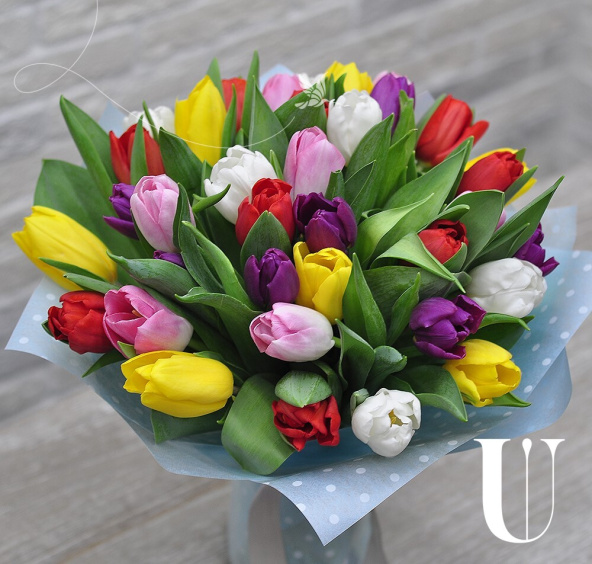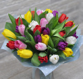 Композиция из красных роз и альстромерий микс в крафтовой упаковке