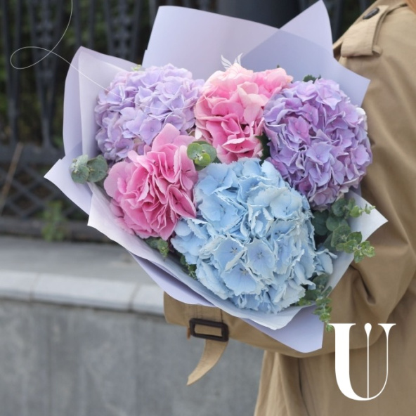 Букет из 5ти шапочек гортензии, может быть выполнен в единой цветовой гамме