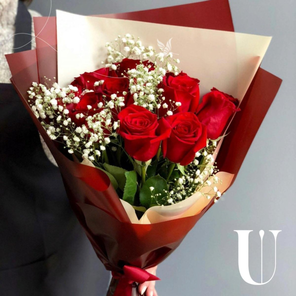 Монобукет из 7 роз микс в дизайнерской упаковке