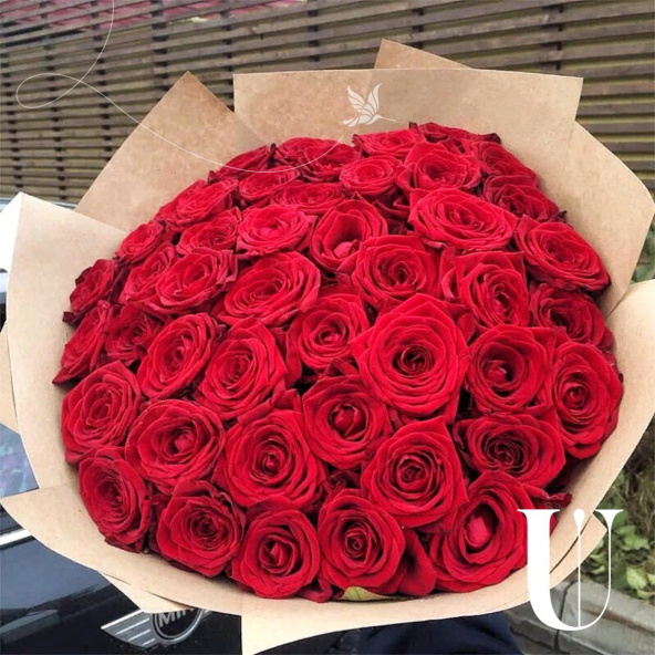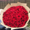 Монобукет из микса роз Россия 60 см в матовой пленке