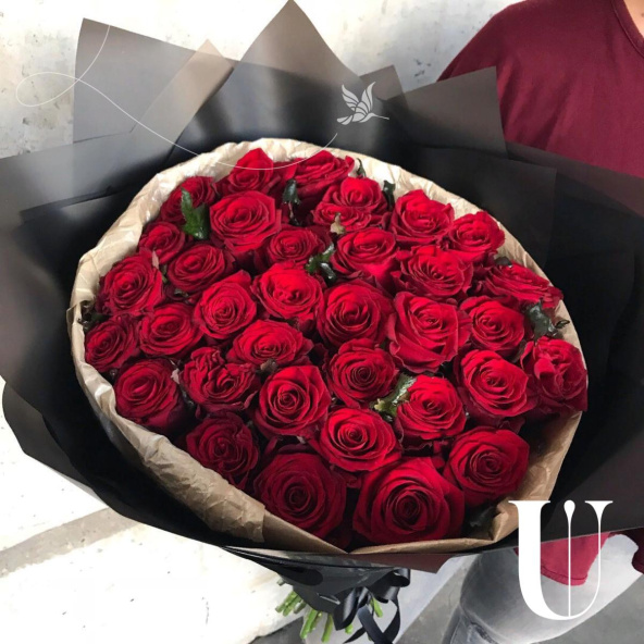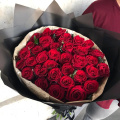 Монобукет из 15 красных роз в дизайнерской упаковке
