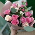 Монобукет из 15 красных роз в дизайнерской упаковке