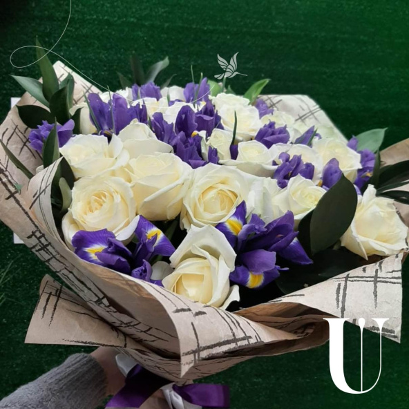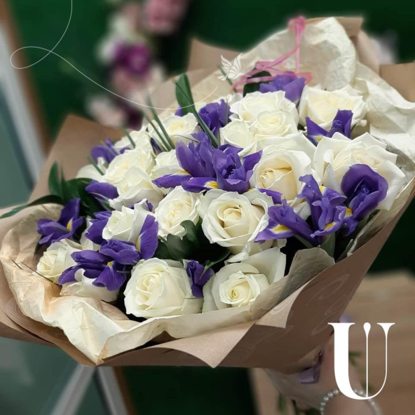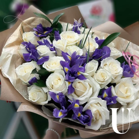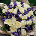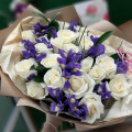 Ирисы необычно красивые цветы, ирисы хорошо смотрятся как в моно букетах , так и в сборных, например с розами