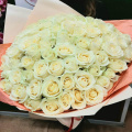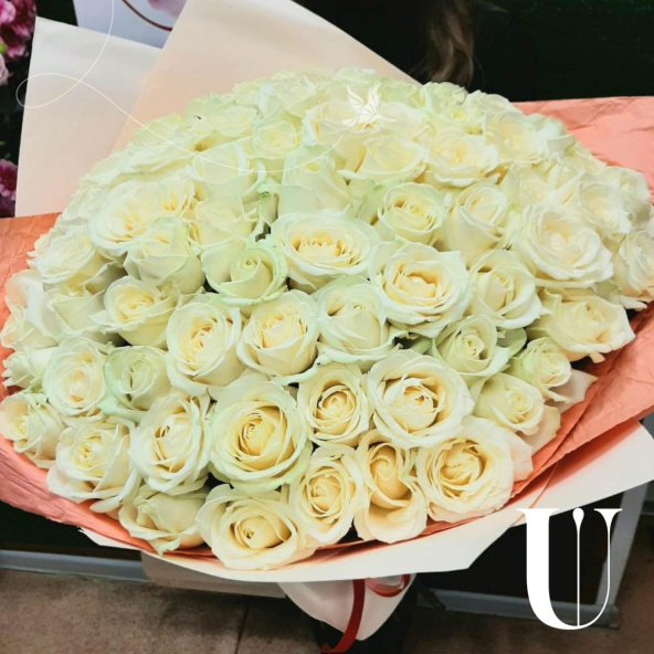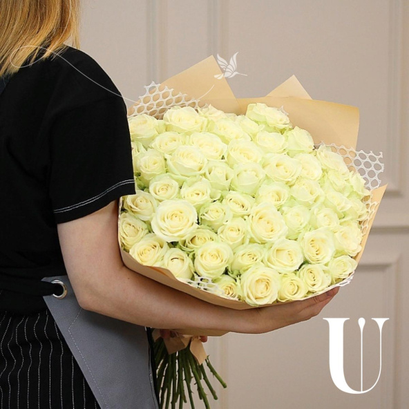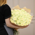 Российская роза - 51 шт, пленка матовая - 3 шт. Даже самые красивые цветы нуждаются в правильном оформлении. Пленка давно и успешно используется в качестве декоративного украшения букетов, теперь матовая пленка в тренде моды красиво контрастируют с шероховатой бархатистостью роз.