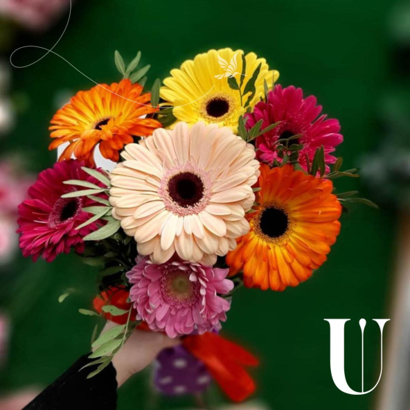 Яркий монобукет из 7 гербер микс в стильной упаковке