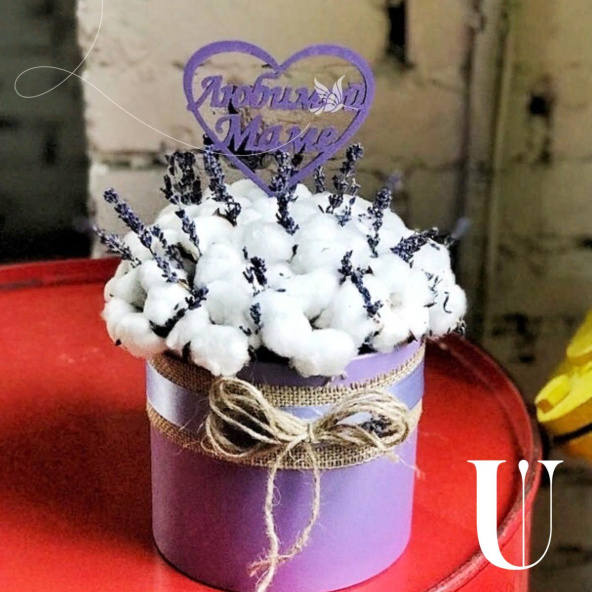 Букет сухоцветов "Коробочка с хлопком и лавандой"