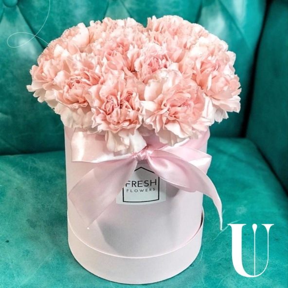 Цветы в шляпной коробке "Коробочка с розовыми диантусами Мини"